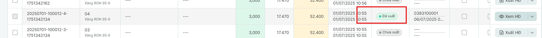 Bước 4: Kiểm tra trạng thái hóa đơn bên ngoài bảng hóa đơn: