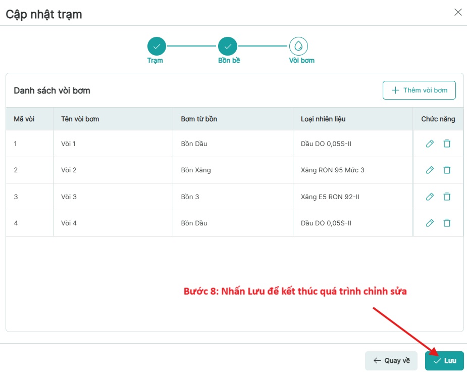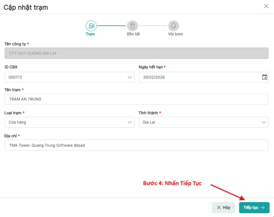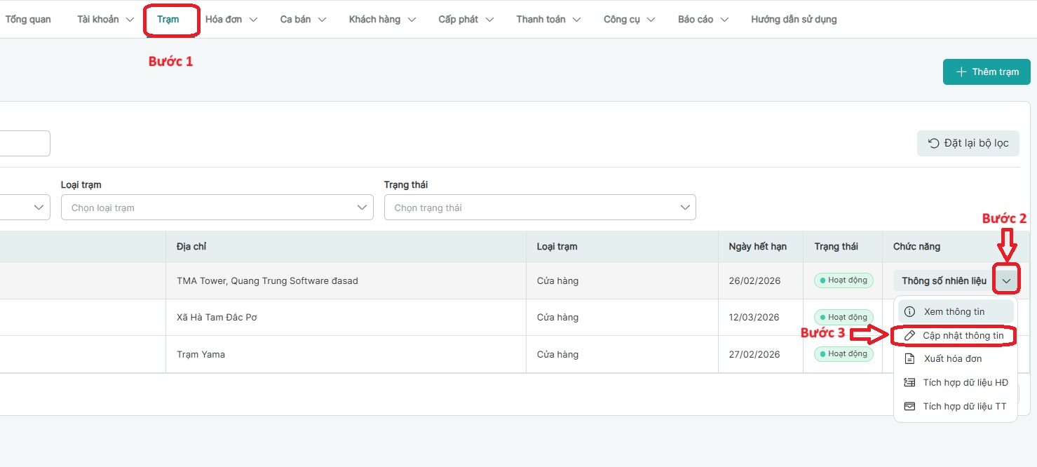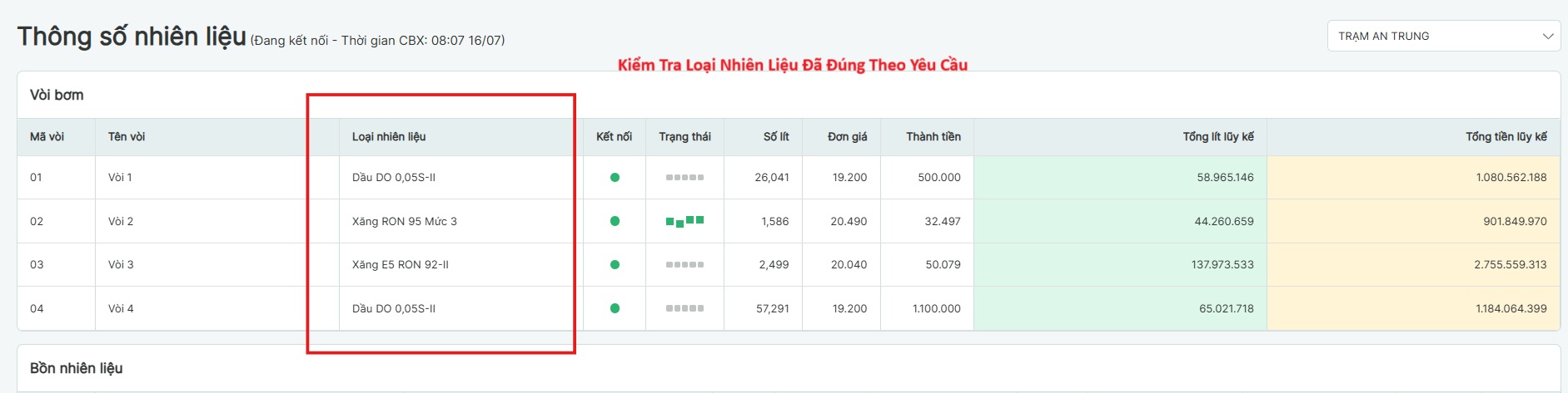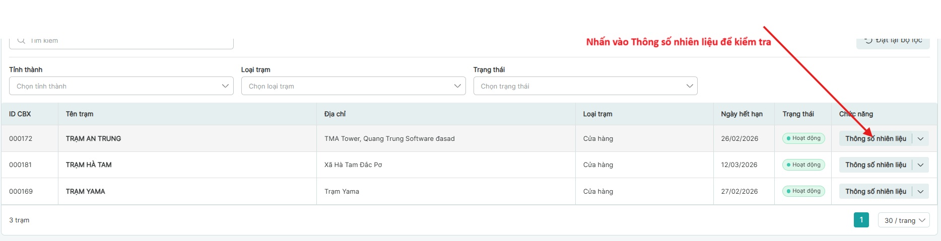 Bước 9: Nhấn vào Trạm chọn Thông số nhiên liêu của từng trạm